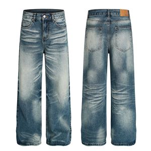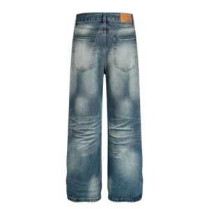 G6855美式潮流男女街头水洗复古蓝猫须纹设计宽松男式直通牛仔裤