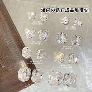 锆石堆钻美甲钻饰爆闪白色冰糖肥方鸽子蛋成品堆钻满钻球指甲饰品