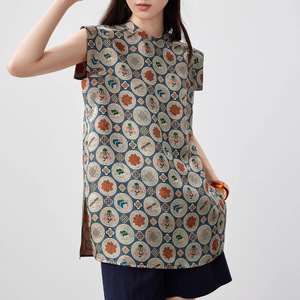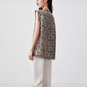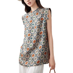 夏季桑蚕丝非遗真丝香云纱新中式国风提花圆领无袖背心衬衫女夏