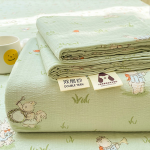 新款a类木棉皱皱双层纱床笠三件套可机洗水洗宿舍学生夏季代发批