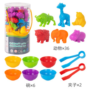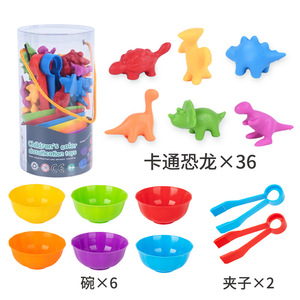 (跨境)早教计数动物玩具软胶恐龙分拣游戏颜色分类碗答题卡益智