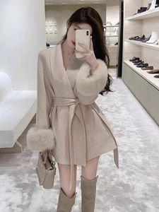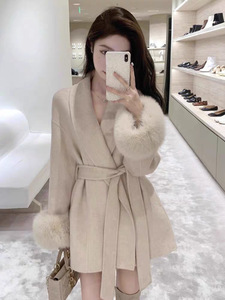 气质名媛千金毛毛袖收腰系带呢子大衣女秋冬高级感超好看毛呢外套