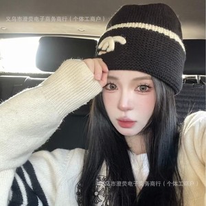 小香风冬季香奶奶羊毛针织帽女保暖加厚新款毛线帽女潮时尚护耳帽