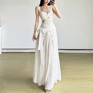 2025ヨーロッパとアメリカの夏のクロスボーダー新しいトレンディなレースのノースリーブトップハイウエストスリムフィットヒップカバーロングスカートスーツ