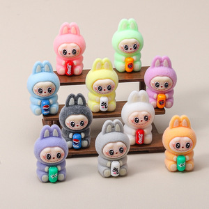 植绒饮品小兔子 树脂摆件diy饰品车载配件包包挂件钥匙扣直播萌粒