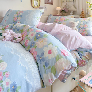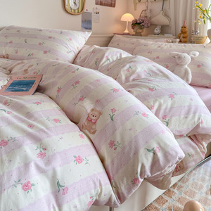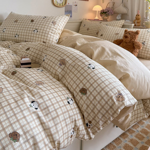 2025 新しい綿かわいい漫画スタイル 4 点セット純綿小さな新鮮なプリント学生寮 3 点セットベッドシーツ