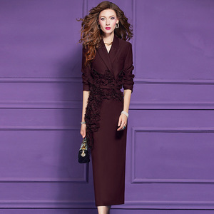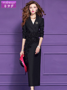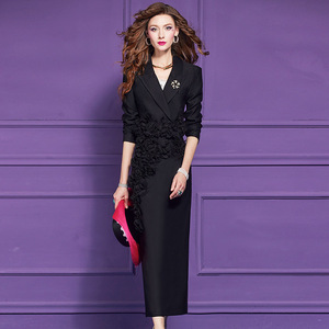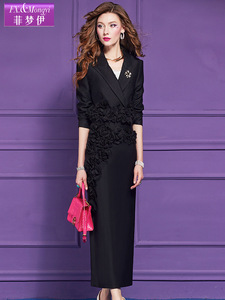 菲梦伊立体花朵西装套装女秋季别致通勤时尚职业上衣半身裙两件套