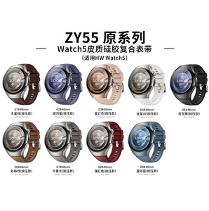 适用华为watch5按压式表带 官方同款皮质硅胶复合HW watch5手表带