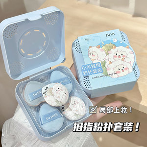 sujn小羊咩咩拇指粉扑套盒 柔软亲肤遮瑕提亮植绒气垫粉扑五个装