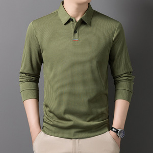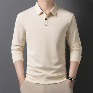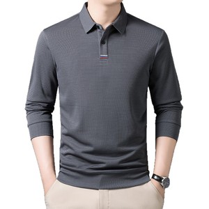 跨境秋冬新款长袖男t恤刺绣翻领百搭薄款宽松商务休闲Polo衫男t恤