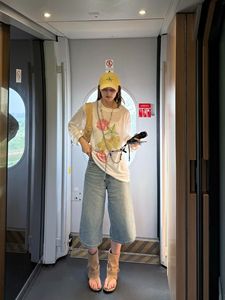 夏日绝美漂亮薄款上衣超好看宽松慵懒白色印花长袖T恤防晒罩衫女
