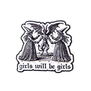 黑白女巫女孩英文字母语录胸针徽章服装背包配饰品跨境外贸现货