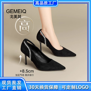 戈美其高跟鞋女2025秋季新款细跟水钻不累脚女士跟鞋时装高跟单鞋