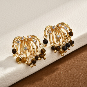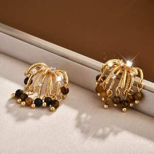法式烟花瀑布琥眼耳钉优雅高级感美拉德复古耳环小众气质新款耳饰