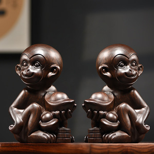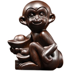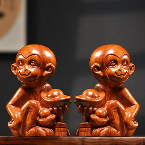 猿の木彫り装飾品、十二支工芸品、誕生日プレゼント、デスクトップ、リビングルーム、ホームアクセサリー