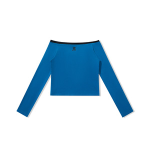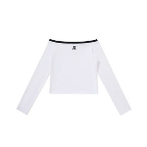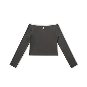 现货韩国restandrecreation斜肩RR一字肩长袖上衣辣妹修身显瘦T恤