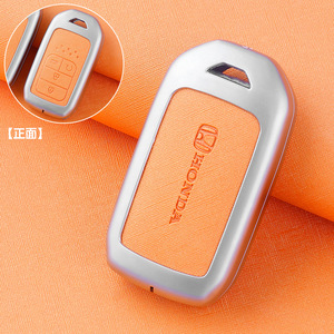 ZH本田A款4按键【珍珠铬-橙色皮】金属壳+月牙皮扣