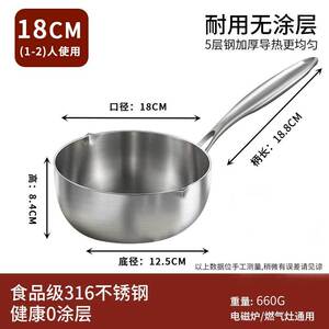 加厚食品级316不锈钢奶锅辅食不粘雪平锅无涂层一人食煮泡面小锅