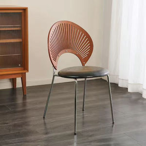 原木靠背+棕色软包坐垫(银架)贝壳椅