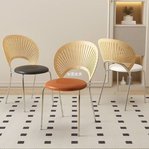 贝壳椅家用加厚餐桌椅简约实木椅商用铁艺靠背椅轻奢感休闲椅餐椅