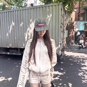一只癫羊2025年早秋刺绣连帽卫衣外套辣妹字母时尚宽松短裤套装