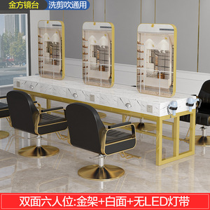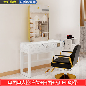 美发店镜子网红单面带灯理发店镜台双面烫染桌美容化妆发廊剪发镜