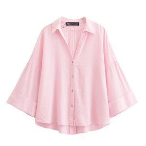外贸单!春季新款长款时尚宽松休闲设计感小众衬衫上衣2340939