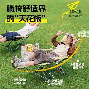 户外折叠椅便携式月亮椅高背可躺露营椅子野餐躺椅沙滩椅钓鱼椅子