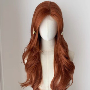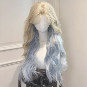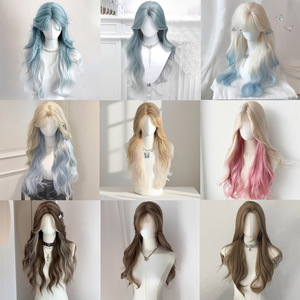 假发女前额蕾丝自然蓬松大波浪渐变挑染中分八字刘海长卷发全头套