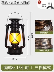 ブラック + カラフルな炎の光 + Type-C 急速充電インターフェース + ソーラー