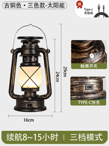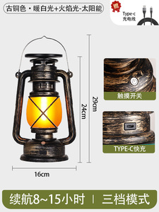ブロンズ + ウォームホワイト + 炎の光 + Type-C 急速充電インターフェース + ソーラー