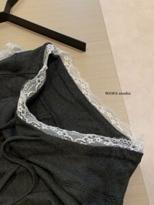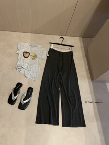 WGWE6533#蕾丝拼接低腰直筒阔腿裤女夏2025新款休闲运动拖地裤子