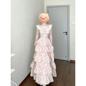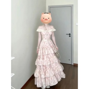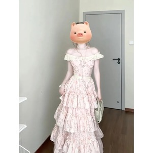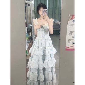 清新精致法式甜美收腰可爱小飞袖蛋糕裙新款度假气质连衣裙