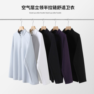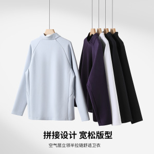 360克曼巴棉立领半拉链卫衣男现货纯色拼接宽松柔软亲肤休闲卫衣