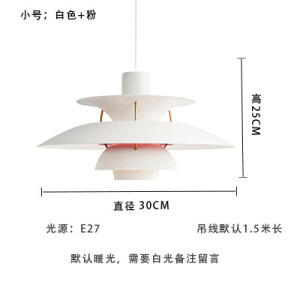 白+粉小号30cm配12瓦LED暖光 原版-吊线1.5米(可调范围约1.2