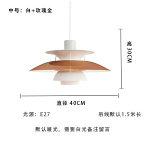 白+玫瑰金中号40cm配LED暖光 原版-吊线1.5米(可调范围约1.2