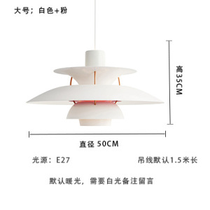白+粉大号50cm配LED暖光 原版-吊线1.5米(可调范围约1.2