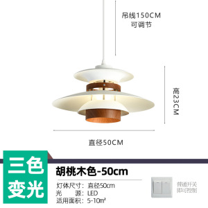 胡桃木色-50cm三色变光(E27) 吊线长1.5米(可调范围约1.2米)