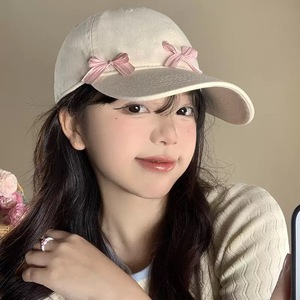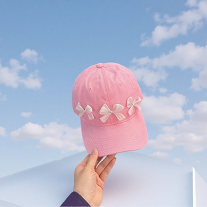 三个蝴蝶结棒球帽女韩版2025新款休闲百搭宽帽檐显脸小防晒鸭舌帽