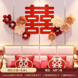 婚房装饰布置套装喜字贴背景墙结婚装饰场景布置褶皱纸花婚礼装饰