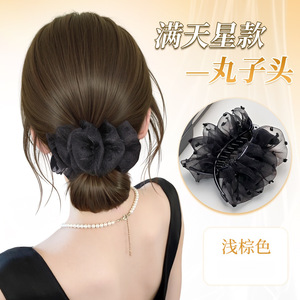 丸子头假发女抓夹后脑勺饱满网纱花苞头盘发神器自然仿真假发发圈