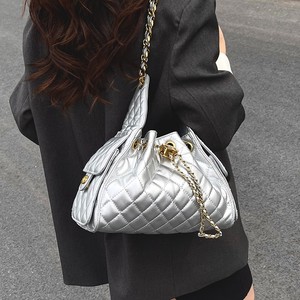 水桶包小香风抽绳菱格链条单肩包小众设计休闲通勤百搭包包女跨境