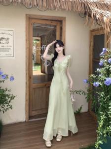 绿色【感/温柔风/超仙女/森系小清新/绝美/桔梗茶歇法式/气质洋气/网红/别致漂亮/减龄/初恋//御