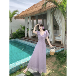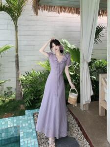 紫色【夏日/海边度假/小个子/宴会/垂坠感/超火/胖mm显瘦/端庄大气/网红/法式浪漫/仙气/a字/