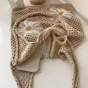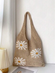 跨境亚马逊temu手提单肩包花朵针织包韩版编织夏季通勤包简约便携