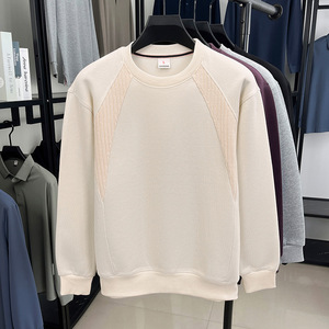 跨境秋季新款男士长袖卫衣圆领棉质休闲百搭潮流拼接上衣打底衫男