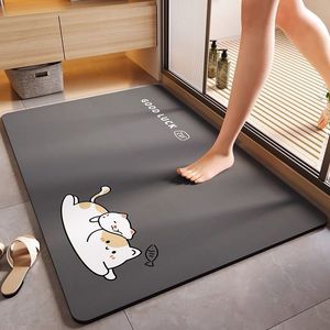 卡通卫生间门口硅藻泥吸水地垫浴室防滑免洗耐脏速干脚垫地毯灰色