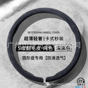 汽车方向盘套四季通用新款男女翻毛皮防滑吸汗透气真皮超薄车把套