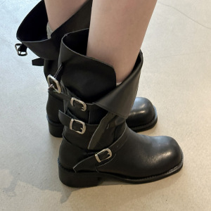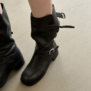 羊皮版~法式复古皮带扣长筒靴女2025秋冬新款小个子不过靴骑士靴