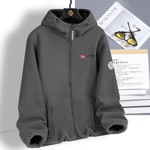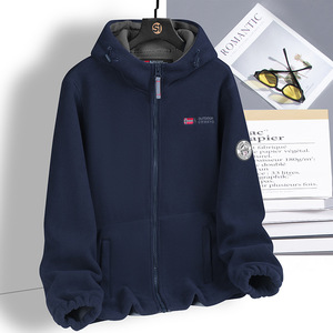 挪威出口加绒加厚抓绒衣加肥加大码外套男厚夹克抗寒保暖连帽上衣